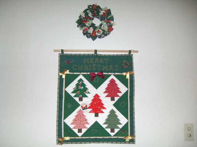 我が家にもツリーの母親お手製パッチワークのツリーが