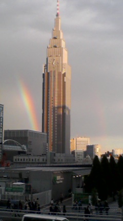 新南口で写メ撮ってる人がいて、なんだろーってカメラの先を見たら虹がかかってた!