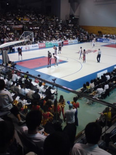試合はぼちぼち面白かったけど、スポーツ全般のことなんすかね?? 地元のチームだからって露骨に地元びいき・・・ 両チームの練習中なのに司会者が会場のお客さんに地元のチームの応援の練習や、試合中のマイクでの応援・・・もちろんこちらのチームのみです。また敵チームのフリースローのときのブーイングや地ならしなど・・・ こないだの亀田戦を思い出しました・・・解説の亀田びいきですね。